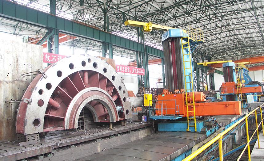 公司擁有廠房面積20萬平方米,各類設備2000余臺。主要設備有:數控內外工作臺雙柱15m立車、16m重型數控臥車, Φ220數控雙立柱落地鏜床、 Φ160落地鏜床、12m臥車、8m重型龍門刨床、DK7 750數控線切割機、VB825數控銑床、20T、10T銑槽機、1000T油壓機、800T沖床、100T/20T行車、大電機試驗站、風電試驗中心、汽車電機試驗中心等,具有強大的制造能力 。
