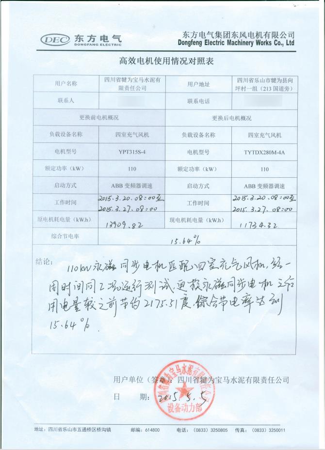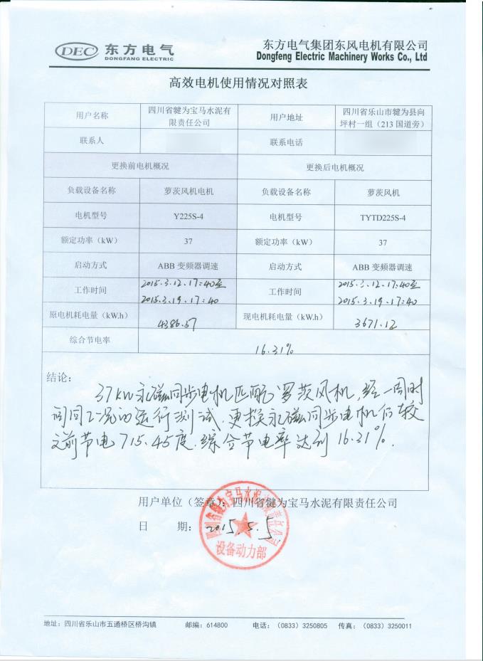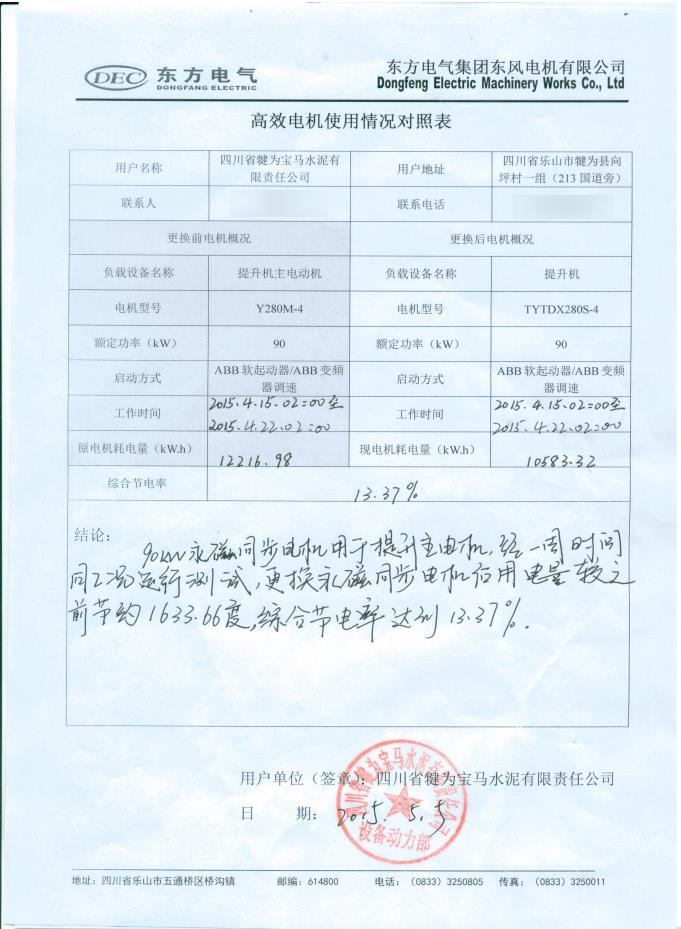 自2014年起多家水泥生產(chǎn)企業(yè)先后向我司購(gòu)買了額定功率18.5~355千瓦等不同規(guī)格型號(hào)的電機(jī),用于水泥生產(chǎn)線節(jié)能改造項(xiàng)目。節(jié)能改造的對(duì)象包括羅茨風(fēng)機(jī)、蓖冷風(fēng)機(jī)、孰料鏈斗輸送、入磨提升機(jī)主傳、立磨分離機(jī)等負(fù)載設(shè)備的主電機(jī)等。從用戶反饋的情況來(lái)看,節(jié)電效果明顯,電機(jī)各項(xiàng)指標(biāo)符合設(shè)計(jì)要求,綜合節(jié)電率>10%。