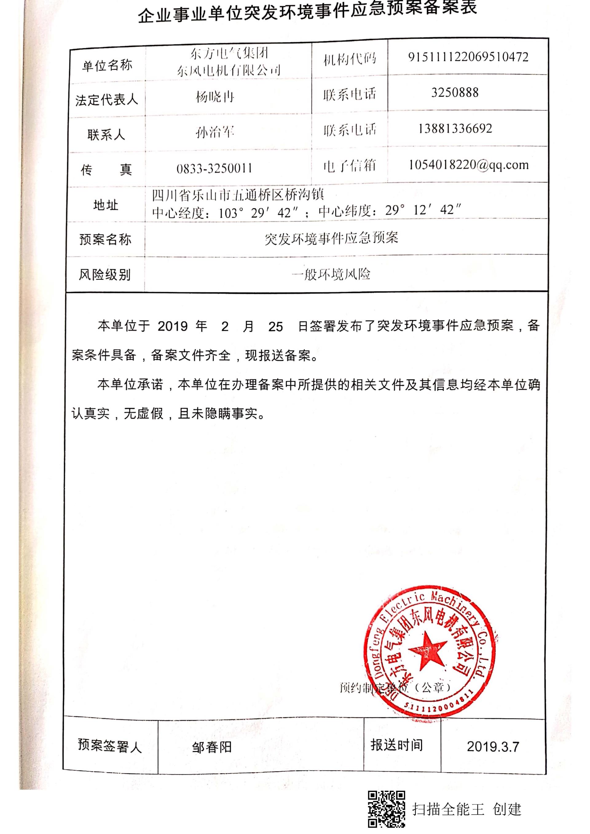 東風電機環境信息公開